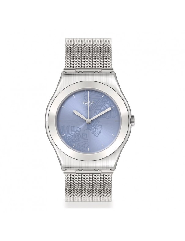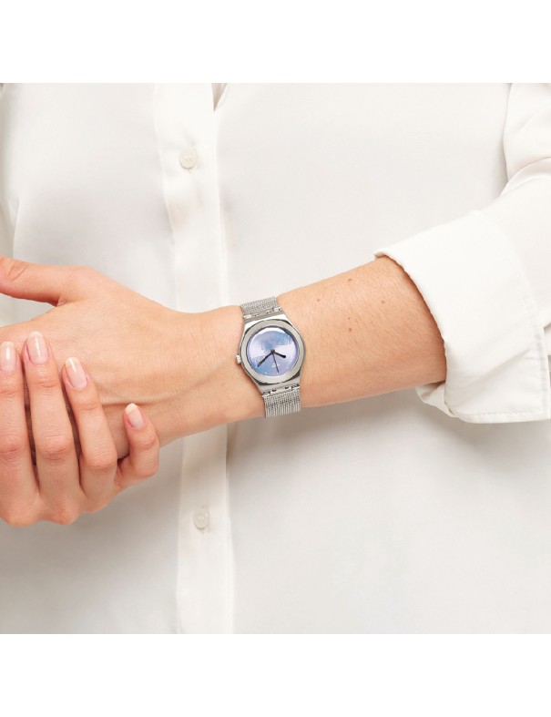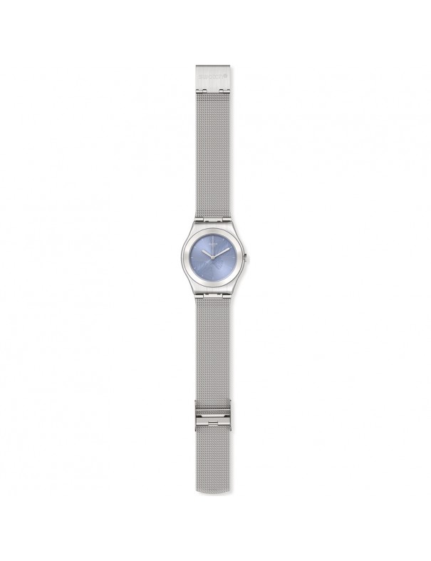 Reloj Swatch Ciel Azul YLS231M (M), analógico de tres agujas. Caja y pulsera de acero inoxidable. Caja de 34mm de diámetro. Pulsera ajustable. Sumergible a 3ATM, por lo que sólo soporta pequeñas salpicaduras.