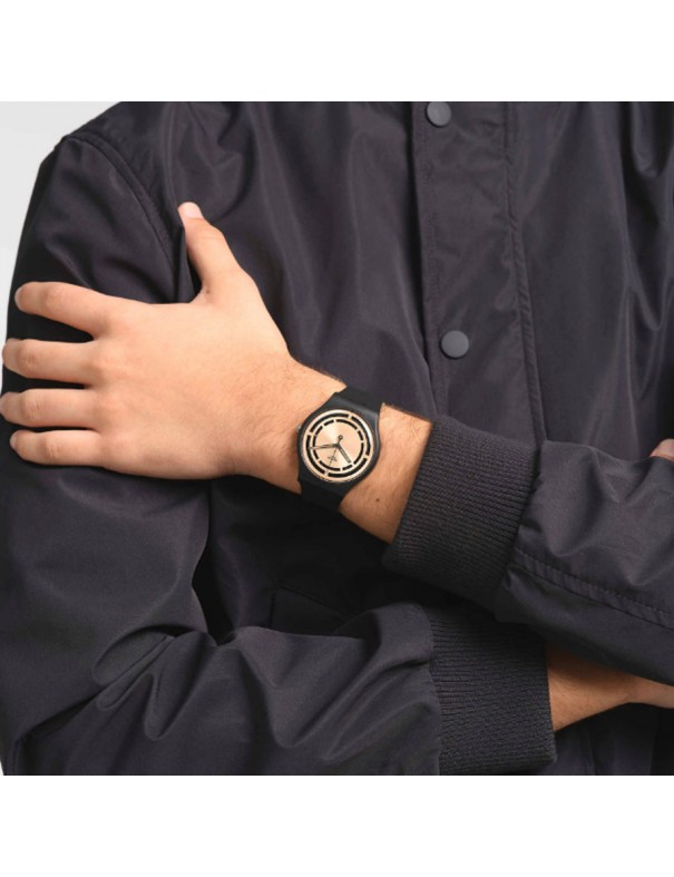 Reloj Swatch Clear Sign SO32B116 unisex. La esfera de biocerámica y mide 41 mm de ancho. La pulsera es de silicona con hebilla de plástico. No es sumergible (3ATM) y sólo admite leves salpicaduras. Garantía de tres años.