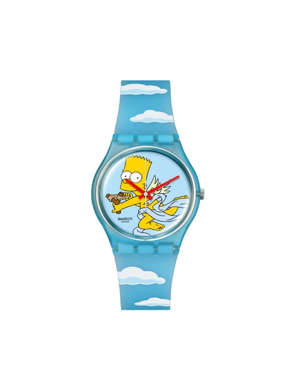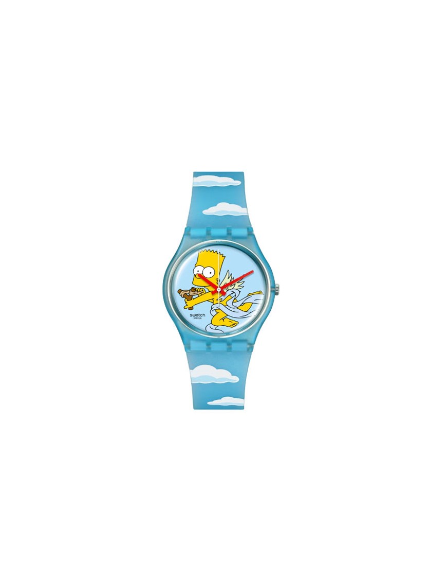 Reloj Swatch Sweet Embrace SO28Z115, analógico de tres agujas. Caja de origen biológico de 34mm de diámetro. Pulsera de silicona. Sumergible a 3 ATM, por lo que sólo soporta pequeñas salpicaduras.