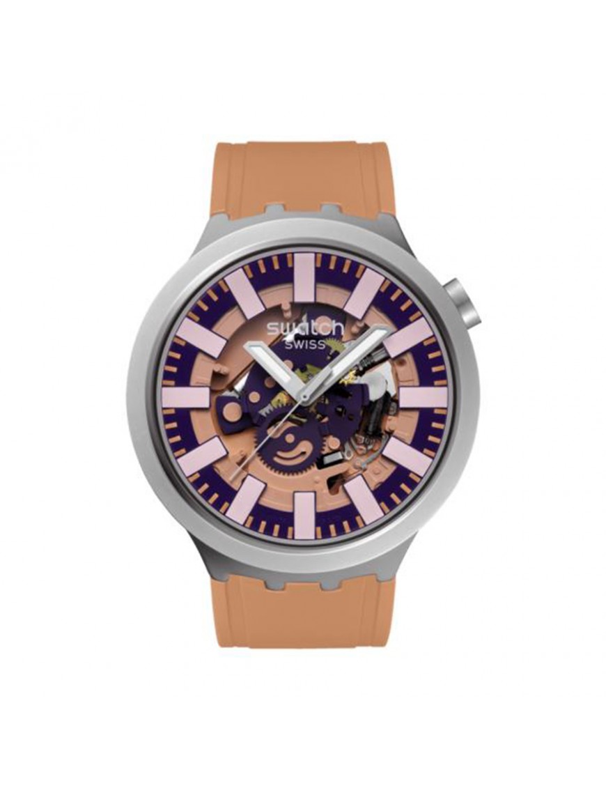 Reloj Swatch Terracotta Tide SB07S119 . La caja es de acero inoxidable y mide 47 mm de diámetro. La pulsera es de caucho beige con hebilla de acero. No es sumergible (3ATM). Garantía de tres años.