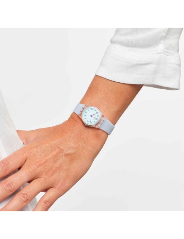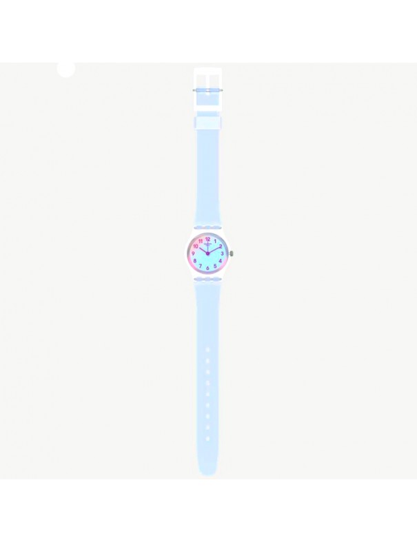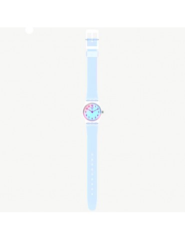 Reloj SWATCH Casual Blue LK396. Caja de resina transparente, esfera azul con efecto Solar Spectrum y correa de silicona azul con cierre de hebilla. Funciones de horas, minutos y segundos analógicos. Resistencia al agua hasta 3 bares. Garantía de 3 años.