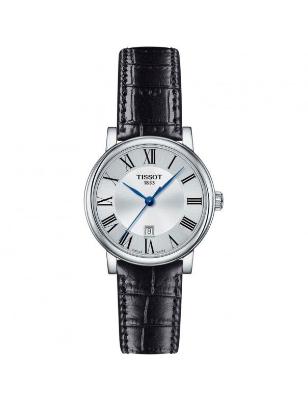 Reloj Tissot Hombre Carson Premium T122.410.16.033.00. Es un reloj analógico tres agujas. Movimiento Swiss Made. Con indicador del día del mes a las 6 horas. Este reloj Tissot está fabricado en acero antialégico e inoxidable. La caja que encierra al mecanismo mide 40 milímetros en color plateado con la tapa trasera transparente. Un cristal de zafiro irrayable protege a la esfera, la cual es de color plata. Los indicadores de la hora son números arábigos en color negro y las agujas en color azul. La correa es de piel en color negro, imitando a la piel de lagarto, lo que le dan un toque vintage. Es sumergible a 50 metros de profundidad lo que le protege de pequeñas salpicaduras. Somos distribuidores oficiales de los relojes Tissot que ofrecen una garantía de 2 años contra defectos de fabricación. Todos nuestros pedidos se envían con envoltorio especial de regalo y en sus cajas originales. Disponemos de grabación gratuita.