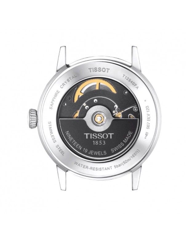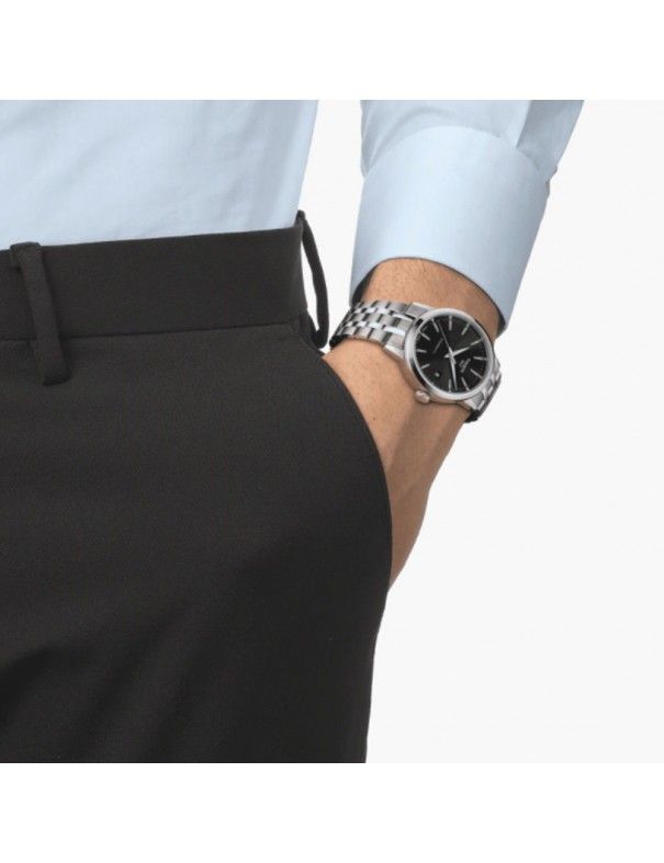 Reloj Tissot Classic Dream Para Hombre T1294071105100, analógico automático con una reserva de carga de 72horas Swiss Made. Esfera negra de 42mm de diámetro con segundero y ventana de calendario. Pulsera de acero con cierre de mariposa y pulsadores. Cristal de zafiro. Sumergible a 5ATM, por lo que es apto para ducha y baño sin inmersión.