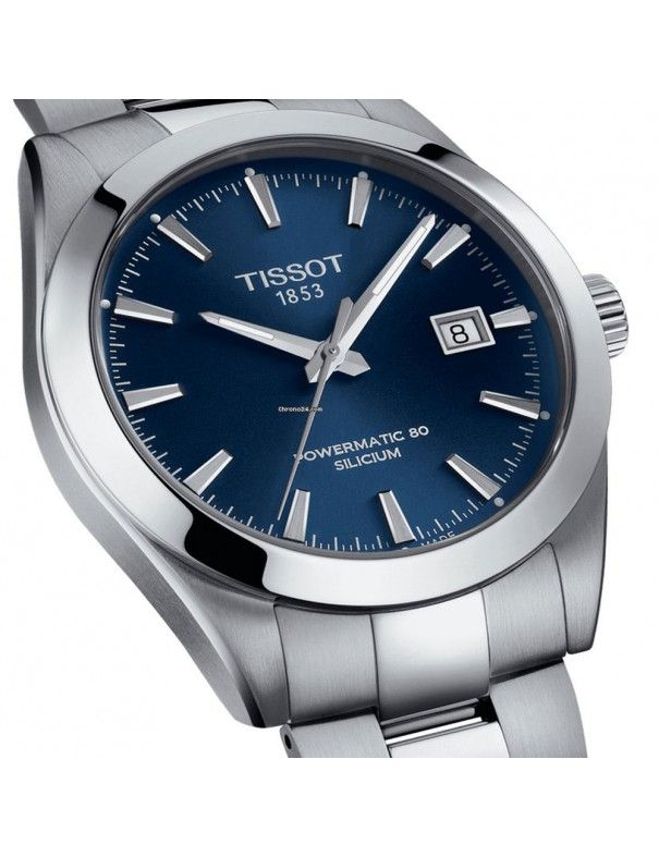 Reloj Tissot Hombre Gentleman Powermatic 80 Silicium, analógico automático con ventana de calendario. Caja de acero de 40mm de diámetro. Pulsera de acero con cierre de mariposa. Cristal de zafiro. Reserva de marcha de hasta 80 horas. Sumergible a 10ATM, por lo que es apto para ducha y baño con inmersión.