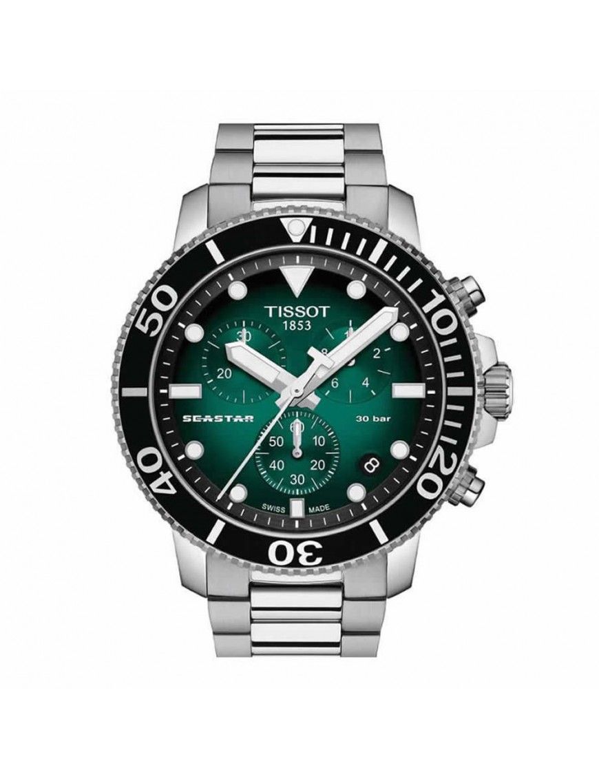 Reloj Tissot Hombre Seastar Crono T1204171109101, analógico cronógrafo con ventana de calendario. Caja de acero de 45mm de diámetro. Pulsera de acero. Cristal de zafiro.