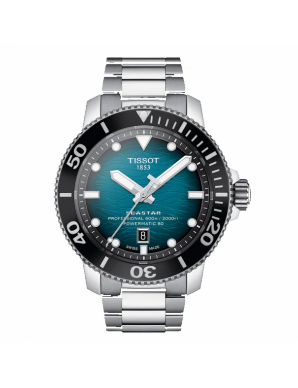 DESCUENTO EN CARRITO. Reloj Tissot Hombre Seastar T1206071104100, analógico de tres agujas. Caja de acero de 46mm de diámetro en color negro, bisel de cerámica giratorio y vávula escape de helio. Ventana de calendario. Pulsera de acero. Cristal de zafiro con tratamiento antireflejos. Sumergible a 60ATM, por lo que es apto para buceo profesional.