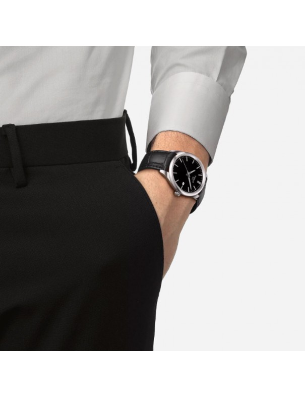 Reloj Tissot PR 100 para hombre T1504101605100. La caja es de acero y mide 40 mm de diámetro. La pulsera es de piel con hebilla de acero. Lleva calendario y crista zafiro que no se raya. Es sumergible a 10 ATM (permite buceo sin botella). Cuenta con tres años de garantía.