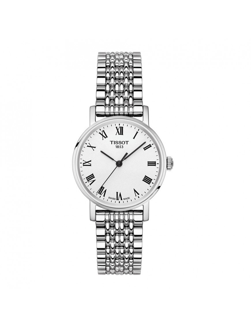 Reloj Tissot Mujer Everytime Small T1092101103300, analógico de tres agujas swiss made. Caja de acero de 30mm de diámetro. Cristal de zafiro. Pulsera de acero. Sumergible a 3ATM, por lo que sólo soporta pequeñas salpicaduras.