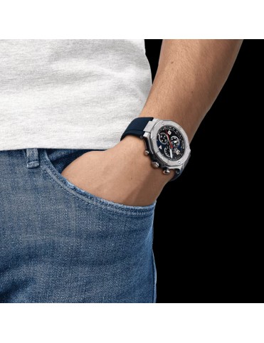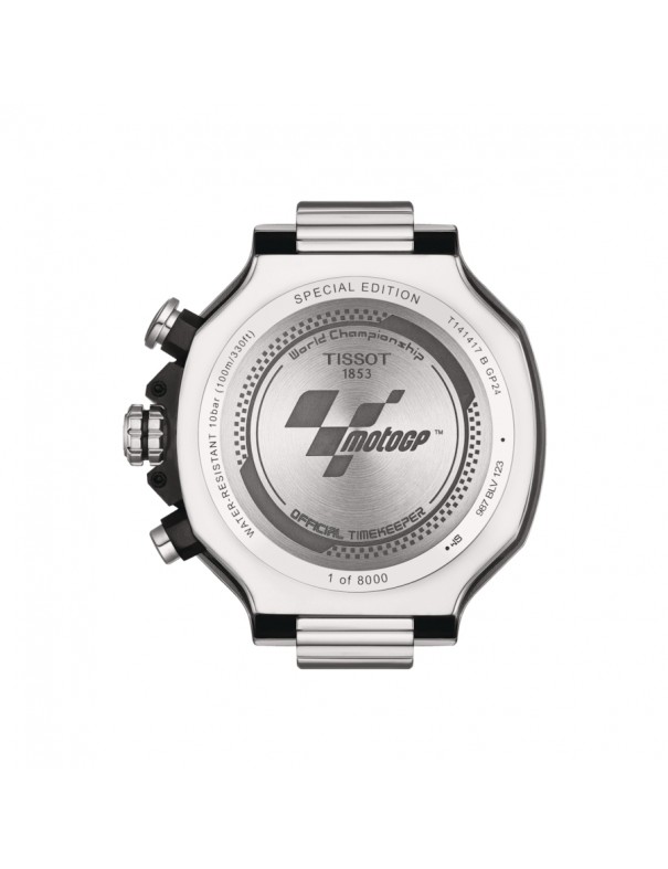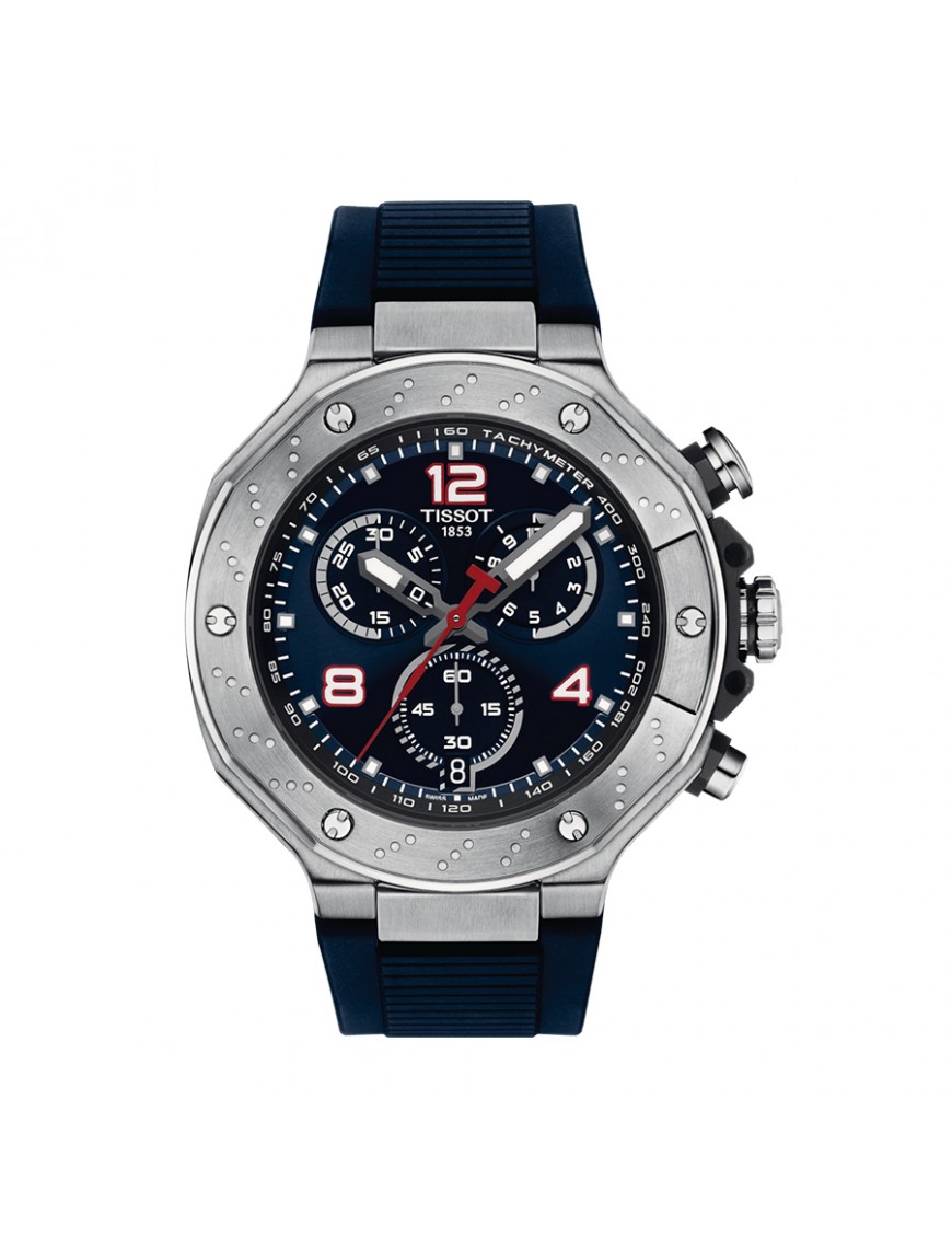 Reloj Tissot T-Race Motogp Para Hombre T1414171704700 2024 Limited Edition. La esfera es de acero y mide 45 mm de diámetro. La pulsera es de silicona azul y lleva cierra de hebilla. Cuenta con movimiento de cuarzo suizo y cristal zafiro resistente a los arañazos con tratamiento antireflejos. El fondo de la caga está grabado con el logo de MotoGP. Incluye un estuche especial con forma de mini casco. Es sumergible a 10 ATM y permite el buceo sin botella. Garantía de tres años.