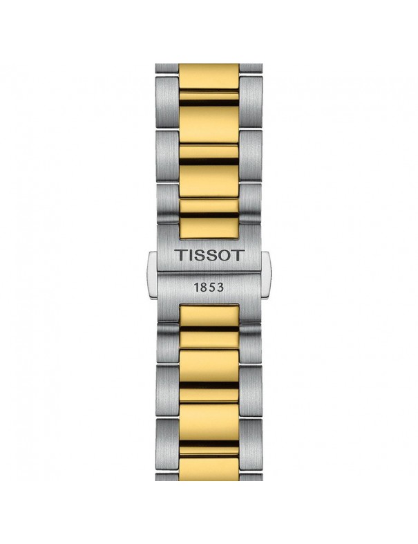 Reloj Tissot PR 100 Cronograph para hombre T1504172203100. La pulsera del reloj es de acero inoxidable con revestimiento de PVP de oro amarillo. La esfera es del mismo material y mide 40 mm de diámetro. El cierre es de mariposa de doble pulsador. Cuenta con Cronógrafo, cristal zafiro y calendario. Es sumergible a 10 ATM (buceo sin botella) y tiene tres años de garantía.