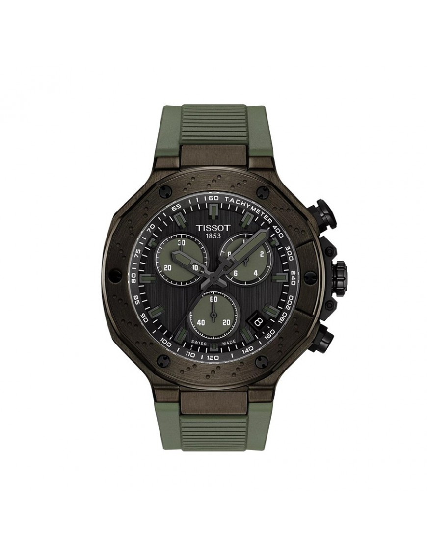 Tissot T-Race Quartz Chronograph T1414173706102. Caja de acero inoxidable con esfera gris oscura cubierta por cristal de zafiro muy resistente. Equipado con un movimiento cronógrafo de cuarzo y agujas de horas y minutos. La correa es de silicona y cuenta con cierre de hebilla. Hermético hasta una presión de 100 metros. Garantía de 3 años.