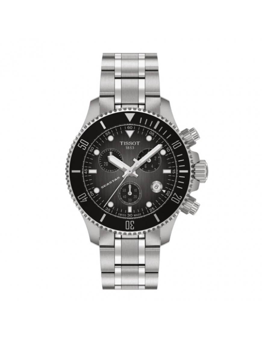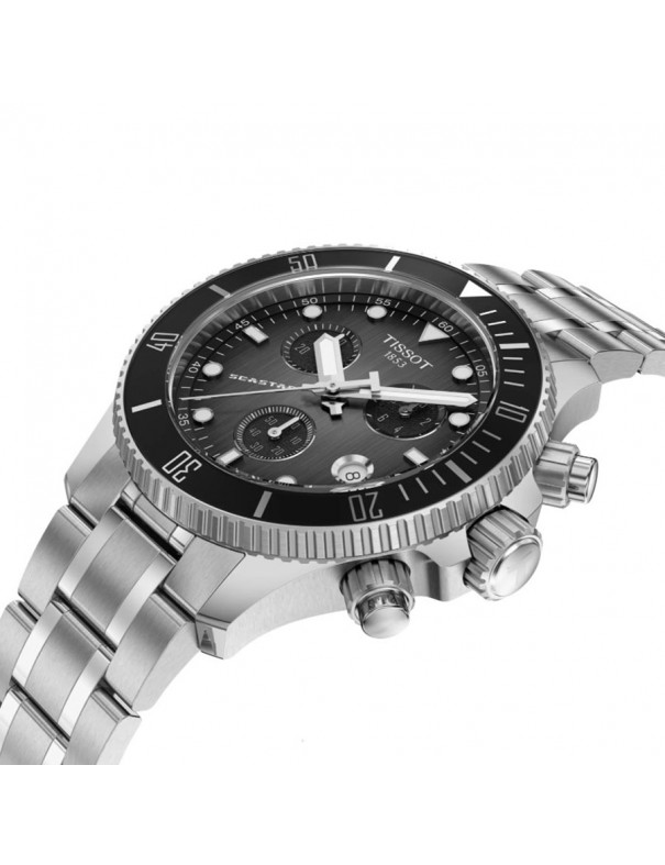 Reloj Tissot Seastar 1000 Quartz Chronograph 38mm T1202171106100. Este modelo combina estilo deportivo y precisión con su caja de acero inoxidable 316L. Incorpora una corona atornillada y fondo de caja sólido, ideal para actividades acuáticas. Su tamaño equilibrado lo hace versátil para cualquier ocasión. Equipado con funciones de cronógrafo de cuarzo suizo. Resistente al agua hasta 300 m y con garantía de 3 años.