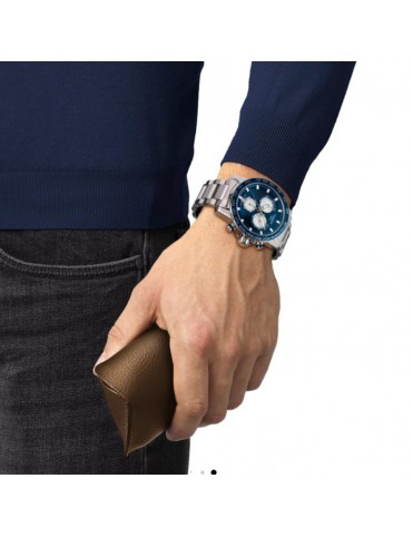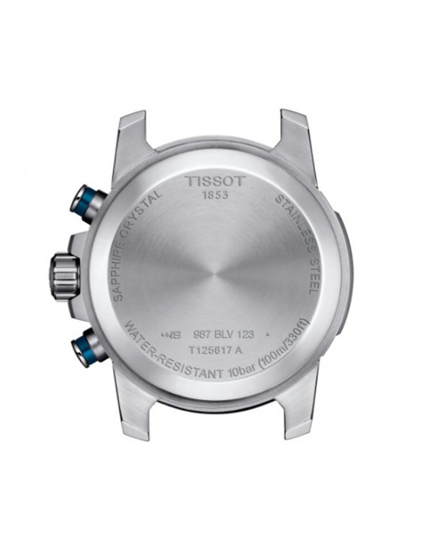 Reloj TISSOT Supersport Chrono T1256171104100. Caja de acero inoxidable en color plata con esfera azul, correa de acero inoxidable con cierre desplegable con pulsadores, funciones de cronógrafo, fecha y taquímetro, resistencia al agua hasta 10 bar. Garantía de 3 años.