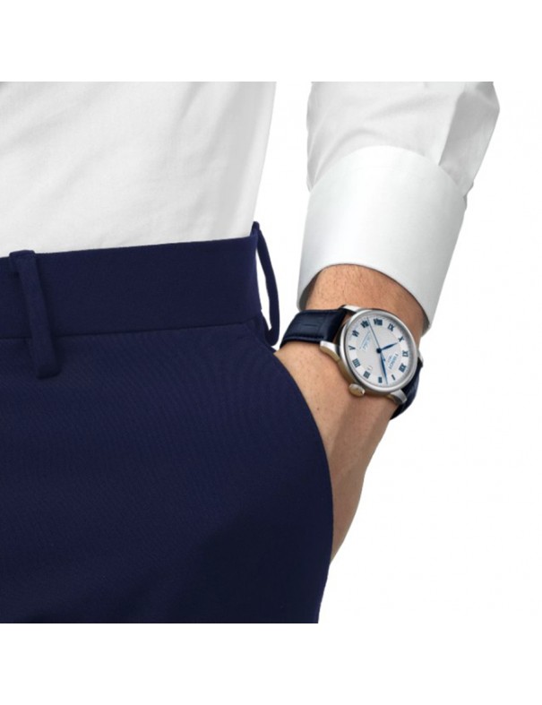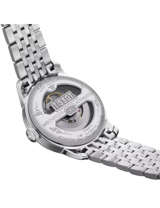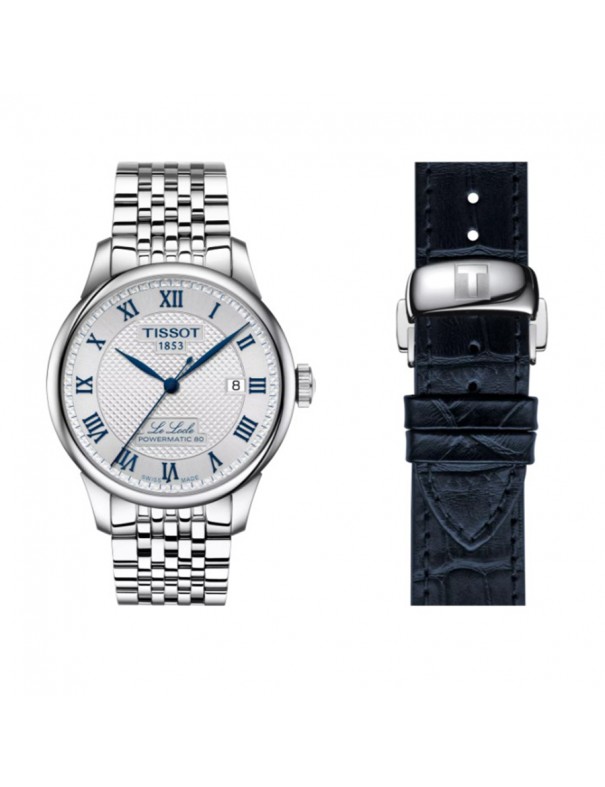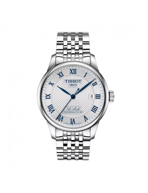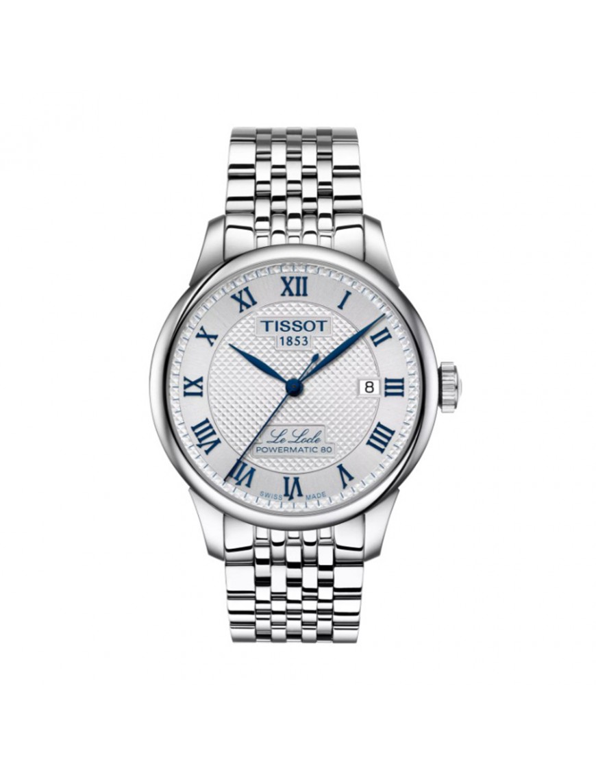 Reloj TISSOT Le Locle 20th Anniversary 39.3mm T0064071103303. Caja de acero inoxidable, esfera plateada con numeración romana, correa de acero inoxidable con cierre desplegable tipo mariposa. Cuenta con brazalete intercambiable de fácil apertura. Movimiento automático con reserva de marcha de hasta 80 horas, función de fecha. Resistente al agua hasta 3 bar.