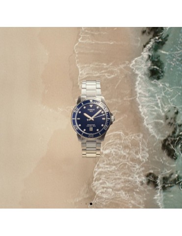 Reloj TISSOT Seastar 1000 40mm T1204101105100. Caja de acero inoxidable en color plata, esfera negra y correa de acero inoxidable con cierre desplegable por pulsadores. Funciona con movimiento de cuarzo suizo y ofrece las funciones fecha y EOL (indicador fin de vida de batería). Resistente al agua hasta 30 bar. Garantía de 3 años.