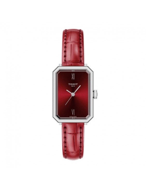 Reloj Tissot SRV 30mm T1601101642300. Caja de acero inoxidable con acabado plata, esfera roja, correa de piel en color rojo con cierre de hebilla estándar y sistema de intercambio rápido. Movimiento de cuarzo suizo con función de horas, minutos y segundos, y cristal de zafiro resistente a los arañazos. Sumergible hasta 5 bar.