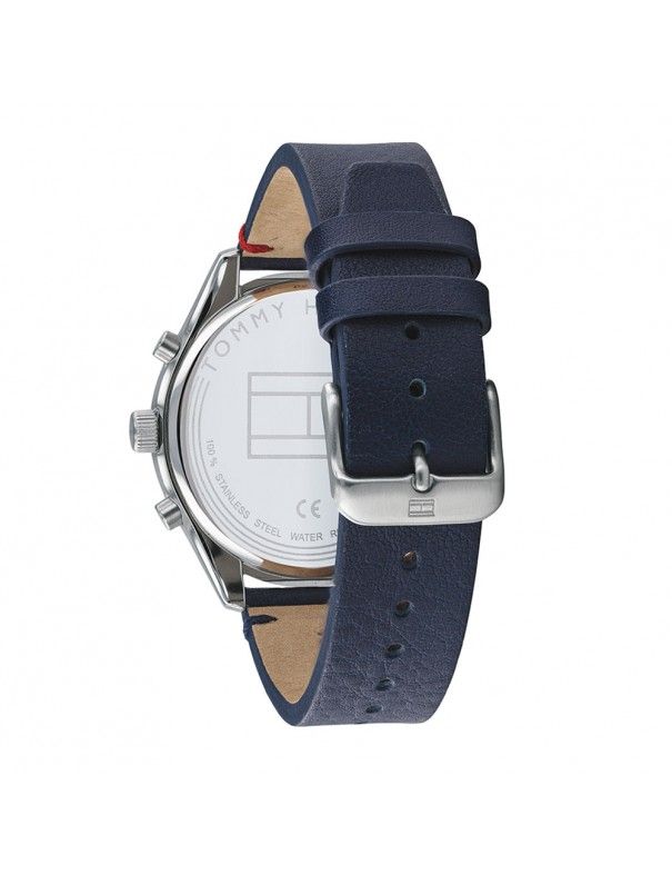 Reloj Tommy Hilfiger Multifunción Para Hombre Bennett 1791728 con correa de piel azul y esfera de 44mm. Multifunción compuesta por dos mini-esferas, que indican hora dual y formato de 24 horas. Esfera con segundero, ventana de calendario y cristal mineral. Sumergible a 5ATM, por lo que admite ducha y baño sin inmersión. Garantía de dos años contra defectos de fabricación.