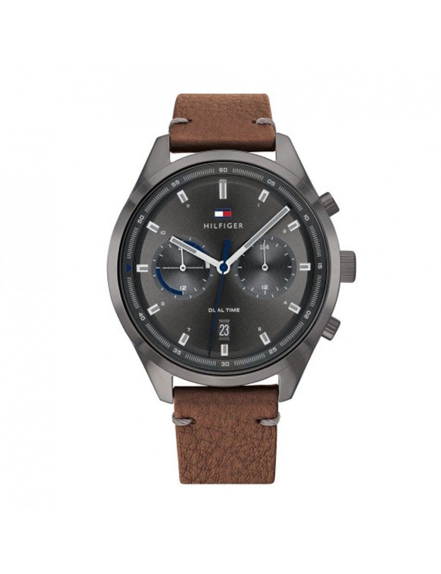 Reloj Tommy Hilfiger Multifunción Para Hombre Bennett 1791730, con correa marrón de piel y esfera de 44mm. Multifunción compuesta por dos esferas que indican hora dual y formato de 24 horas. Esfera con ventana de calendario y cristal mineral. Sumergible a 5ATM, por lo que admite ducha y baño sin inmersión. Con garantía de dos años contra defectos de fabricación.