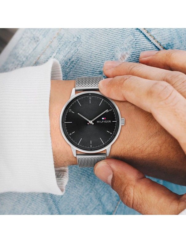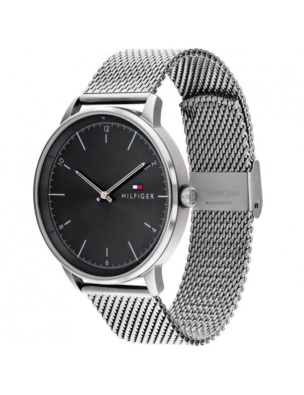 Reloj Tommy Hilfiger Hombre Hendrix 1791842, analógico de 2 agujas. Caja de 43mm de acero inoxidable, esfera negra. Brazalete de malla en acero inoxidable. Cristal mineral. Sumergibble a 5ATM, por lo que es apto para ducha y baño sin inmersión.