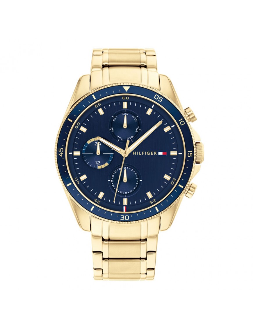 Reloj Tommy Hilfiger para hombre 1791834. La esfera es d acero y mide 44 mm de diámetro. La pulsera es del mismo material con cierre de seguridad. Incluye cronógrafo y cristal mineral. Es sumergible a 5 ATM por lo que permite el nado en superficie sin inmersión. Garantía de tres años.
