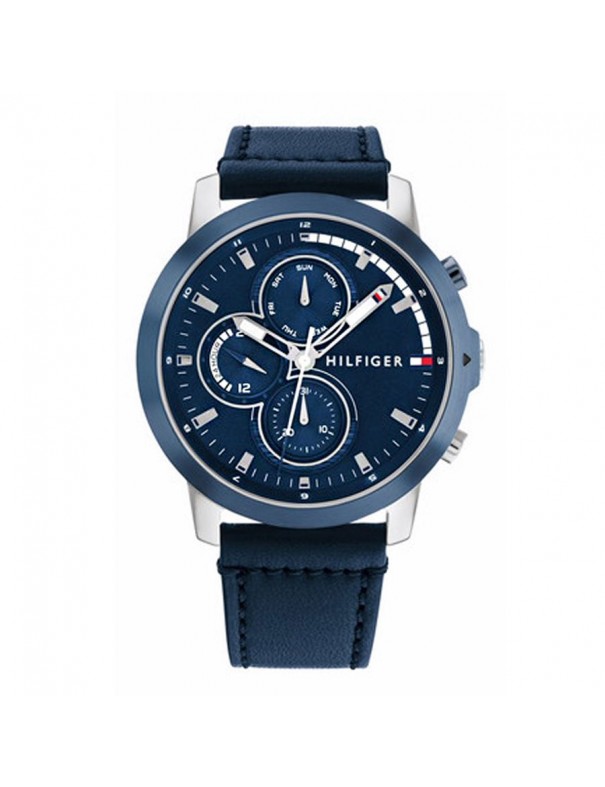 Reloj Tommy Hilfiger para hombre 1792051. La esfera es de acero y mide 46 mm de diámetro. La pulsera es de piel con hebilla de acero. Es un reloj multifunción. Es sumergible a 5ATM y permite el nado en superficie sin inmersión. Garantía de tres años.