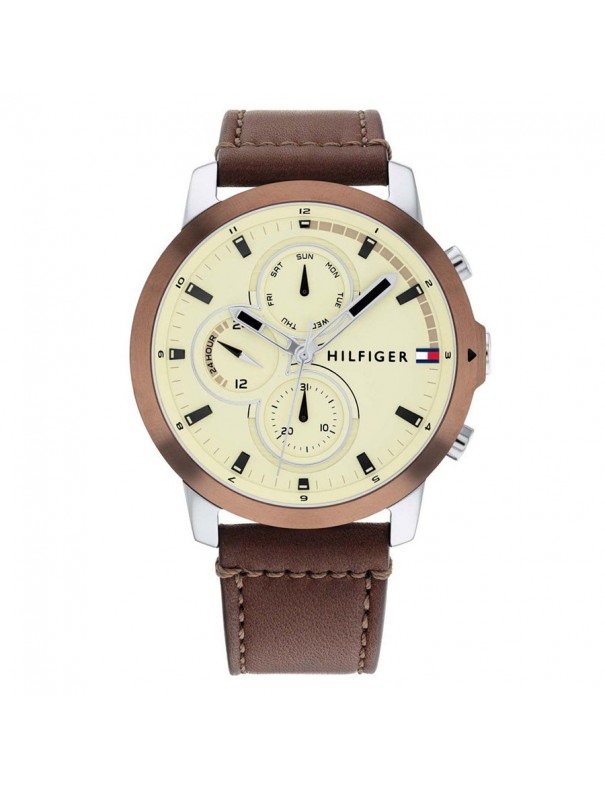 Reloj Tommy Hilfiger para hombre 1792053. La esfera es de acero y mide 46 mm de diámetro. La pulsera es de piel con hebilla de acero. Es un modelo multifunción. Es sumergible a 5 ATM y permite el nado en superficie sin inmersión (no recomendable para la pulsera de piel). Garantía de tres años.