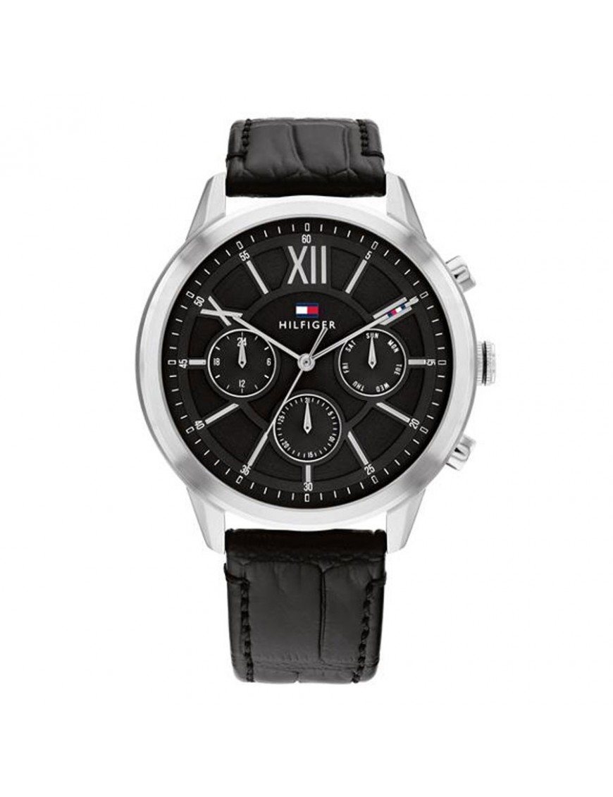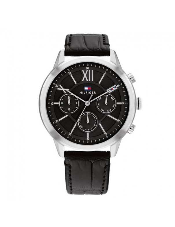 Reloj Tommy Hilfiger para hombre 1710527. La esfera es de acero y mide 44 mm de diámetro. La pulsera es de piel. Es un modelo multifunción que indica día del mes y día de la semana. Es sumergible a 5 ATM por lo que permite el nado en superficie sin inmersión (no recomendable para la pulsera de piel). Garantía de tres años.