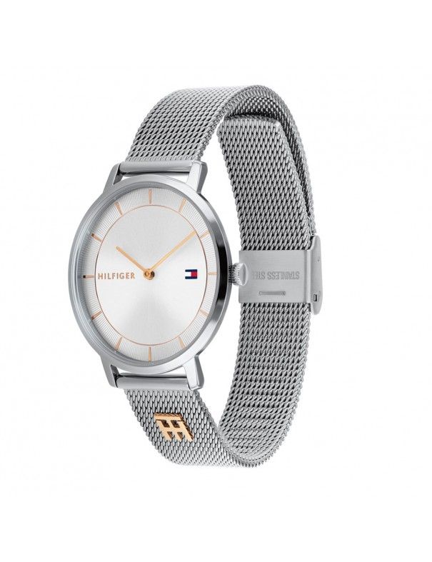 Reloj Tommy Hilfiger Tea para Mujer 1782288, con pulsera milanesa y esfera con diámetro de 35mm. Esfera sin segundero y cristal de cuarzo. Sumergible a 3 ATM (no es apto para ducha o baño, sólo admite pequeñas salpicaduras). Garantía de dos años contra defectos de fabricación.