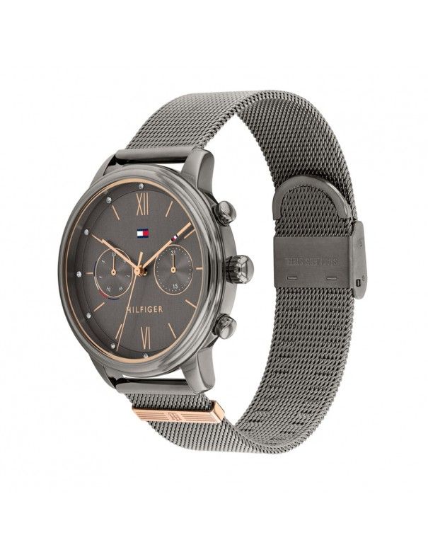 Reloj Tommy Hilfiger Multifunción Blake Para Mujer 1782304, con correa milanesa y esfera de 38mm. Multifunción compuesto por dos esferas que indican sal día de mes y de semana. Cristal de cuarzo. Sumergible a 3ATM (no apto para ducha o baño, sólo admite leves salpicaduras). Con garantía de dos años contra defectos de fabricación.