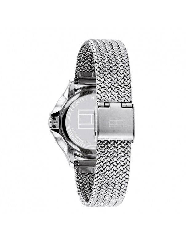Reloj Tommy Hilfiger Mujer Delphine 1782355, analógico sin segundero. Caja de 35mm de diámetro. Cristal mineral y pulsera milanesa de acero. Sumergible a 3ATM, por lo que sólo soporta pequeñas salpicaduras.
