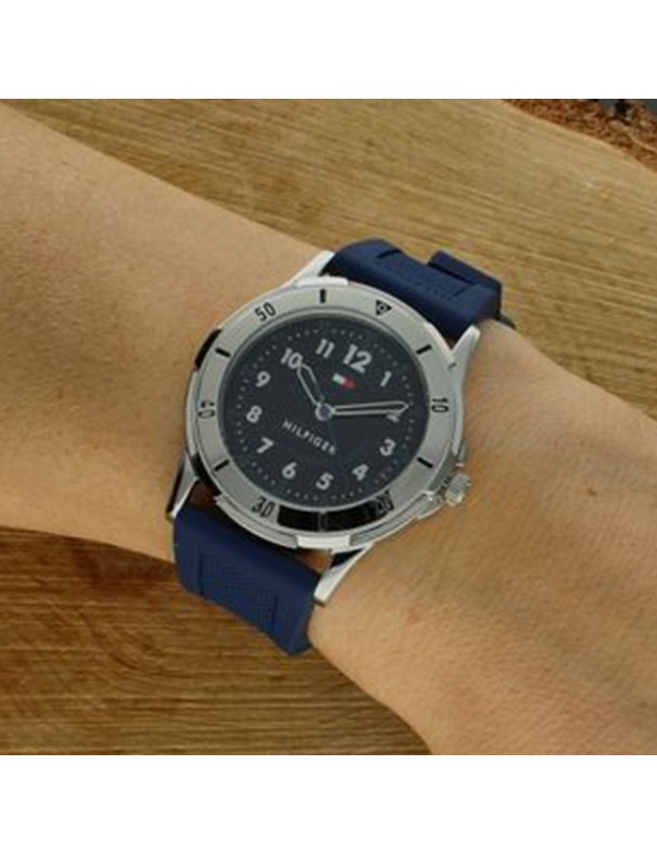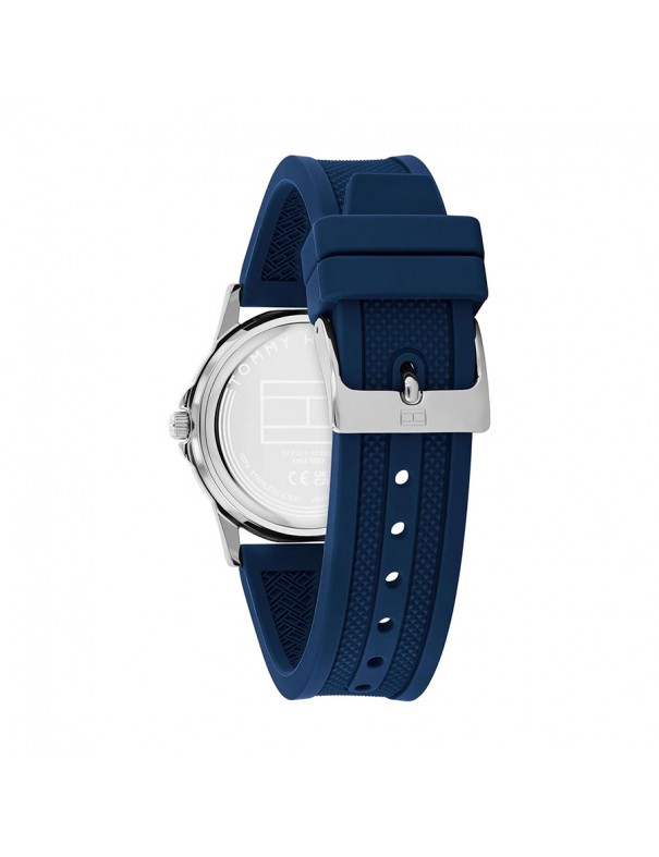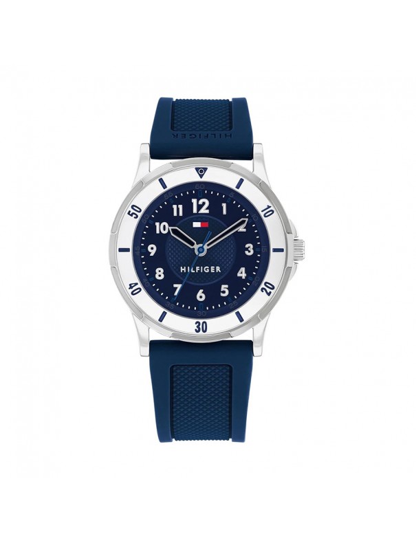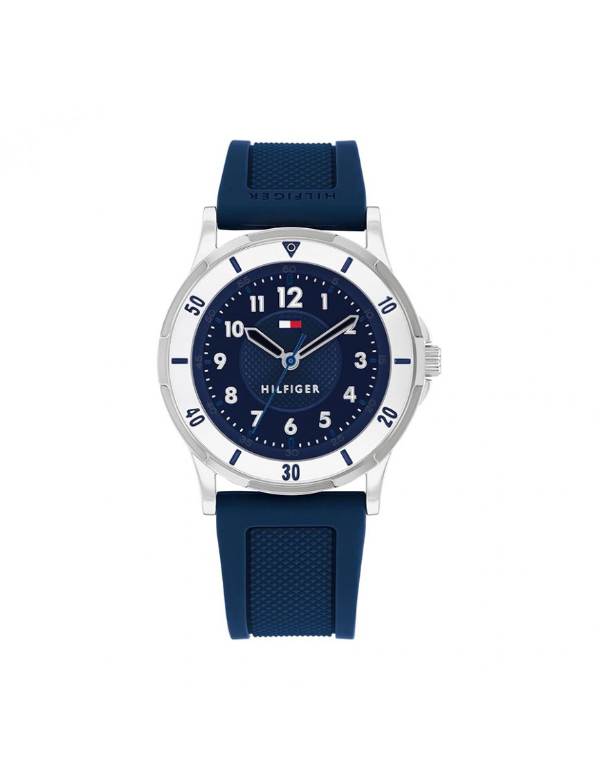 Reloj Tommy Hilfiger Niño Azul 1720040. Caja de acero inoxidable de 34 mm de diámetro con esfera en color azul bajo un cristal mineral. La correa es de silicona y tiene un cierre de hebilla. Sumergible hasta 5 atm. Garantía de 3 años.