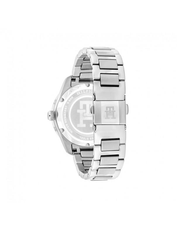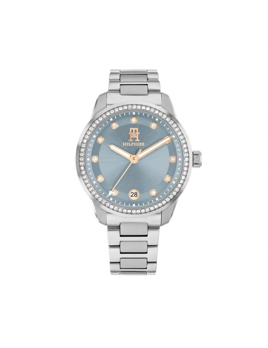 Reloj Tommy Hilfiger Mujer 1782795. Caja de acero de 36mm de diámetro con esfera en color azul claro decorada con cristales bajo un cristal mineral. La correa es de acero y está formada por eslabones con cierre desplegable de doble pulsador. Sumergible hasta 5 ATM. Garantía de 3 años.