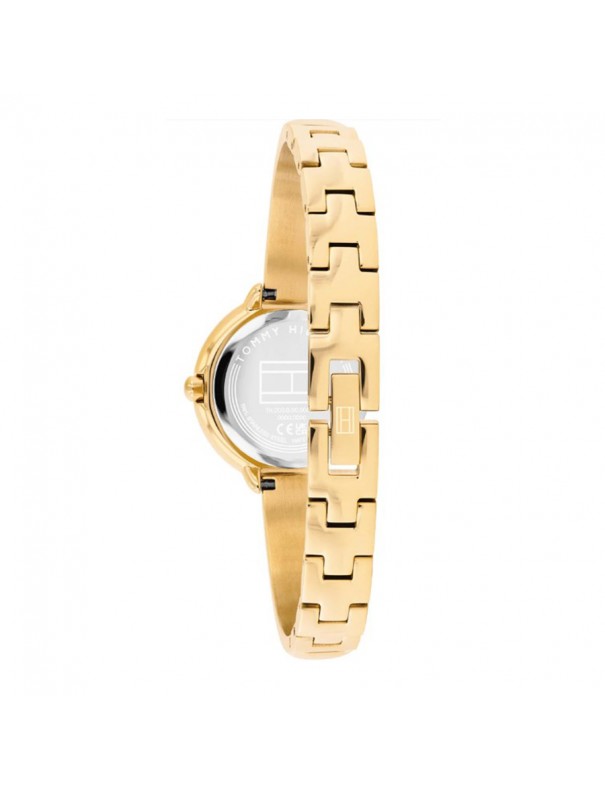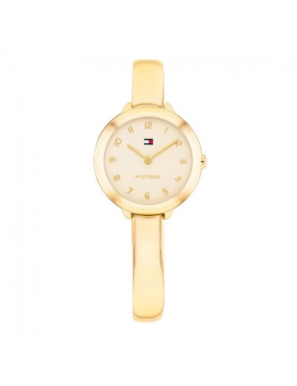 Reloj Tommy Hilfiger 1782895. Sofisticado reloj de mujer que combina estilo y funcionalidad en un diseño totalmente dorado, con una caja redonda de acero inoxidable chapado en tono dorado de 26 mm impulsada por un movimiento de cuarzo fiable y protegida por cristal mineral, ofreciendo una lectura clara y elegante de las horas; su brazalete tipo “bangle” en acero también chapado en oro aporta un acabado pulido y lujoso que se adapta con comodidad a la muñeca, mientras que su resistencia al agua de 3 ATM lo hace apto para el uso diario con protección frente a salpicaduras ligeras.