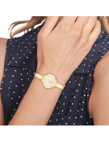 Reloj Tommy Hilfiger 1782895. Sofisticado reloj de mujer que combina estilo y funcionalidad en un diseño totalmente dorado, con una caja redonda de acero inoxidable chapado en tono dorado de 26 mm impulsada por un movimiento de cuarzo fiable y protegida por cristal mineral, ofreciendo una lectura clara y elegante de las horas; su brazalete tipo “bangle” en acero también chapado en oro aporta un acabado pulido y lujoso que se adapta con comodidad a la muñeca, mientras que su resistencia al agua de 3 ATM lo hace apto para el uso diario con protección frente a salpicaduras ligeras. Garantía de 3 años.