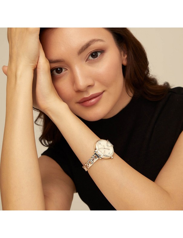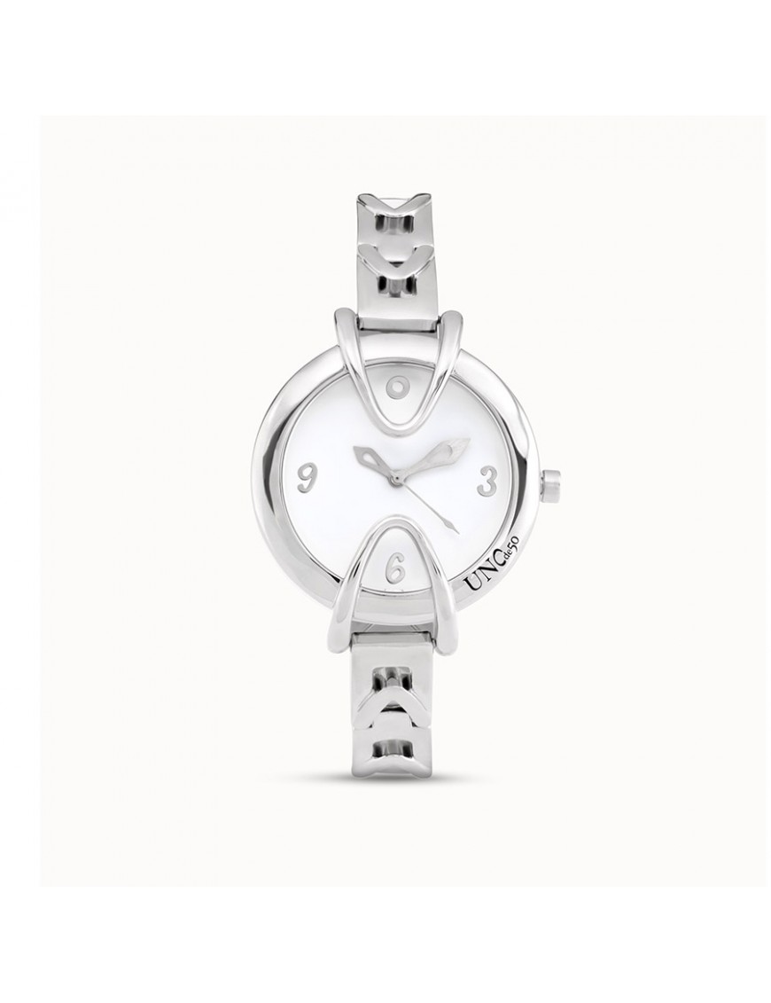 Reloj Bañado en Plata de Ley con Correa Metálica y Esfera Redonda con Interior Blanco REL0145BLNMTL0L