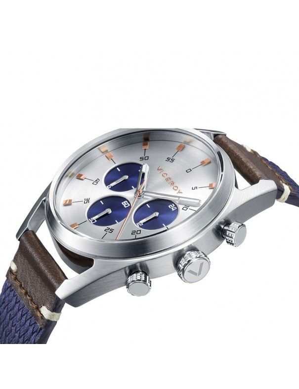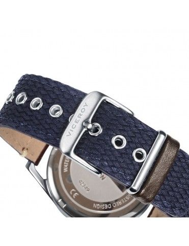 Reloj Viceroy Hombre Multifunción Icon 42349-07. De la colección Icon. Es un reloj diseñado por la marca Viceroy, para hombre. Es un modelo analógico con movimiento de cuarzo de tres agujas luminiscentes y con los indicadores horarios en forma de índice plateados. Bisel en color plateado. La caja que contiene el mecanismo es de acero inoxidable color plata de 42 milímetros de diámetro. La correa es de nylon color azul oscuro y piel color marrón con cierre en hebilla. Este elegante reloj tiene una esfera redonda de color plata que está protegida por un resistente cristal de zafiro con tres miniesferas en color azul con crono. Este reloj es sumergible a 100 metros 10 ATM. Somos distribuidores oficiales de los Relojes Viceroy que ofrecen una garantía de 2 años contra cualquier defecto de fabricación. Todos nuestros pedidos se envían con envoltorio especial de regalo.