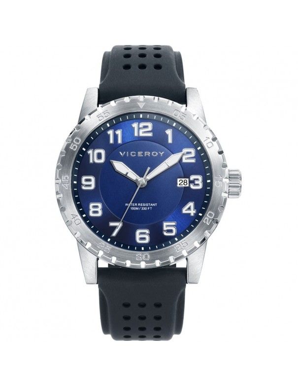 Este reloj Viceroy está hecho en acero antialérgico e inoxidable, en color plata. Destaca su bisel con los números grabados en él. La caja que guarda al mecanismo mide 43 milímetros de diámetro. Sumegible a 100 metros de profundidad, 10 ATM. La correa está realizada en silicona resistente negra con cierre en hebilla. Un cristal mineral protege a la esfera, la cual es de color azul. Los indicadores de la hora son números arábigos de acero plateados y luminiscentes como las agujas menos el segundero en llamativo gris. Somos distribuidores oficiales de los relojes Viceroy que ofrecen una garantía de 2 años contra defectos de fabricación. Todos nuestros productos se envían con envoltorio especial de regalo y con sus cajas originales.