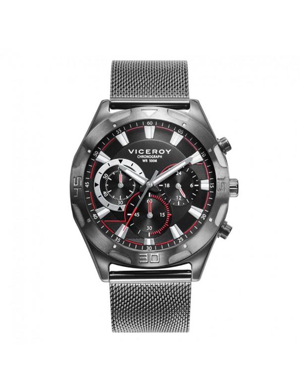 Reloj Viceroy para hombre 401285-57. La esfera es de acero y mide 44 mm de diámetro. La pulsera es del mismo material y lleva cierre deslizable ajustable. Es un modelo cronógrafo. Es sumergible a 10ATM por lo que permite el buceo sin botella. Garantía de tres años.