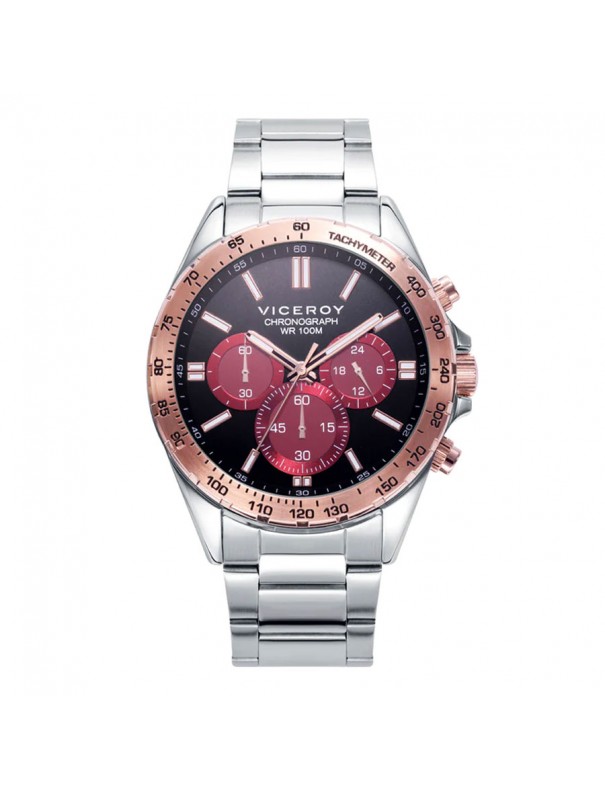 Reloj Viceroy para hombre 401299-73. La pulsera es de acero y lleva cierre de seguridad con doble pulsador. La esfera es del mismo material y mide 43 mm de diámetro. Incluye función cronógrafo. Es sumergible a 10 ATM por lo que permite el buceo sin botella. Garantía de tres años.