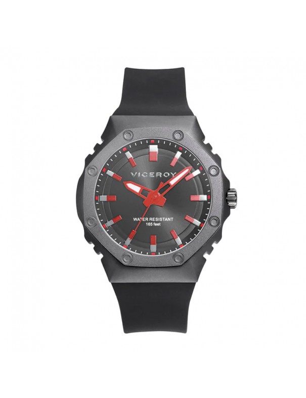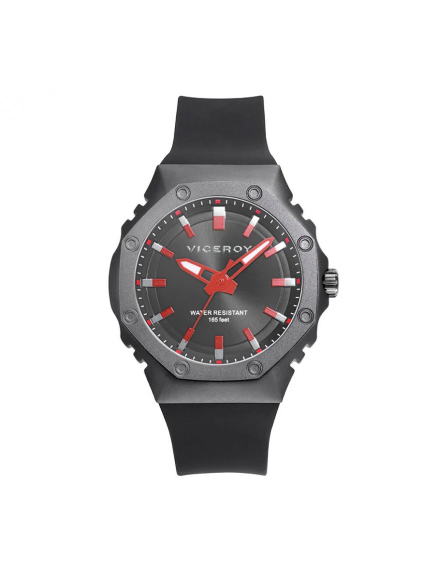 Reloj Viceroy para hombre 41131-57. La esfera es de aluminio y mide45 mm de diámetro. La pulsera es de silicona con hebilla. Es sumergible a 5 ATM por lo que permite el nado en superficie sin inmersión. Garantía de tres años.