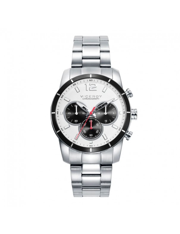 Reloj Viceroy para hombre 42435-05. La esfera es de acero y aluminio y mide 42 mm de diámetro. La pulsera es de acero y lleva cierre desplegable de seguridad. Es un modelo cronógrafo. Es sumergible a 10 ATM por lo que permite el buceo sin botella. Garantía de tres años.
