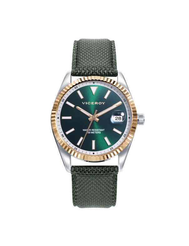 Reloj Viceroy para hombre 42437-67. La esfera es de acero y mide 41 mm de diámetro. La pulsera es de nylon con hebilla. Incluye calendario. Es sumergible a 10 ATM y permite el buceo sin botella. Garantía de tres años.