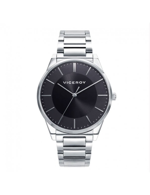 Reloj Viceroy para hombre 46819-57. La esfera es de acero y mide 41 mm de diámetro. La pulsera es del mismo material y lleva cierre de doble pulsador. Es sumergible a 5 ATM y permite el nado en superficie sin inmersión. Garantía de tres años,