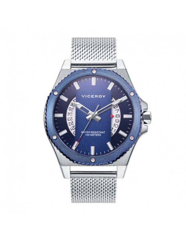 Reloj Viceroy para hombre 46821-37. La esfera es de acero y mide 43 mm de diámetro. La pulsera es del mismo material y lleva cierre deslizante ajustable. Incluye calendario. Es sumergible a 10 ATM y permite el buceo sin botella. Garantía de tres años.