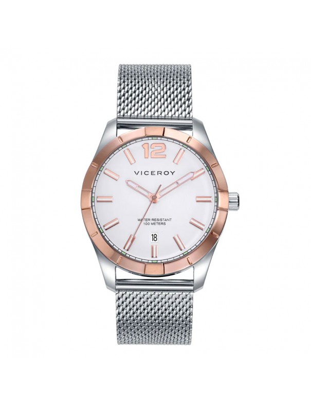 Reloj Viceroy Magnum para hombre 401329-05. La esfera es de acero bicolor y mide 42 mm de diámetro. La pulsera es de acero con cierre deslizante ajustable. Incluye calendario. Es sumergible a 10 ATM y tiene tres años de garantía.