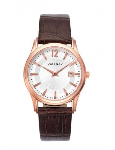 Reloj Viceroy para mujer modelo 47804-97. Se trata de un reloj analógico, con movimiento de cuazo y cristal mineral. La caja es de acero PVD rosa y la pulsera de cuero. Es sumergible a 5 ATM, y funciona con pila. Tiene la función calendario y una garantía de 2 años.