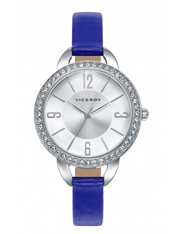 Reloj Viceroy mujer 461006-85. Correa de piel azul. Caja que contiene el mecanismo realizada en acero. Esfera con motivos plateados. Diámetro del reloj 35 mm. Sumergible a 3 ATM. Garantía 2 años.