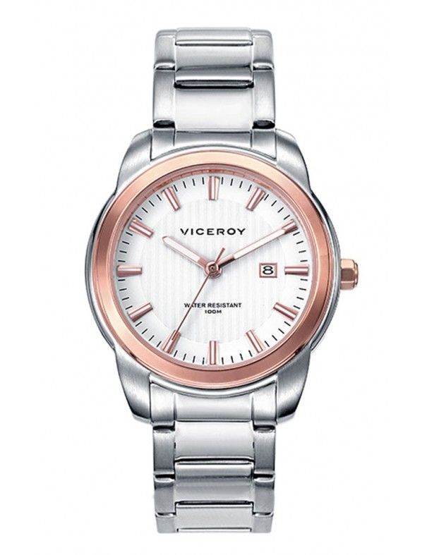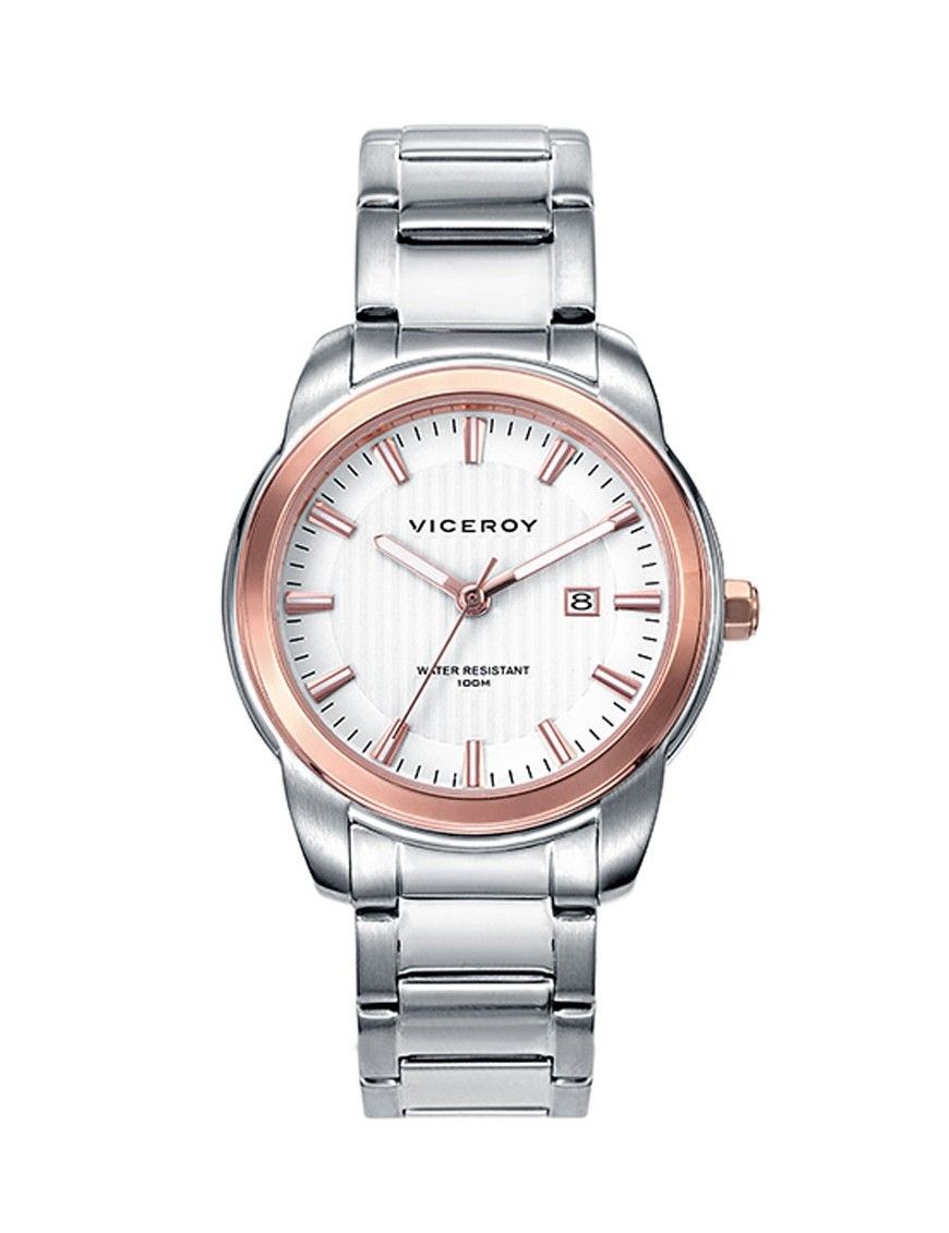Reloj Viceroy mujer 461008-07. La correa y la caja que contiene el mecanismo están realizadas en acero. Bisel acabado en color oro rosa. Esfera blanca. Diámetro del reloj 33 mm. Sumergible a 10 ATM. Garantía 2 años.