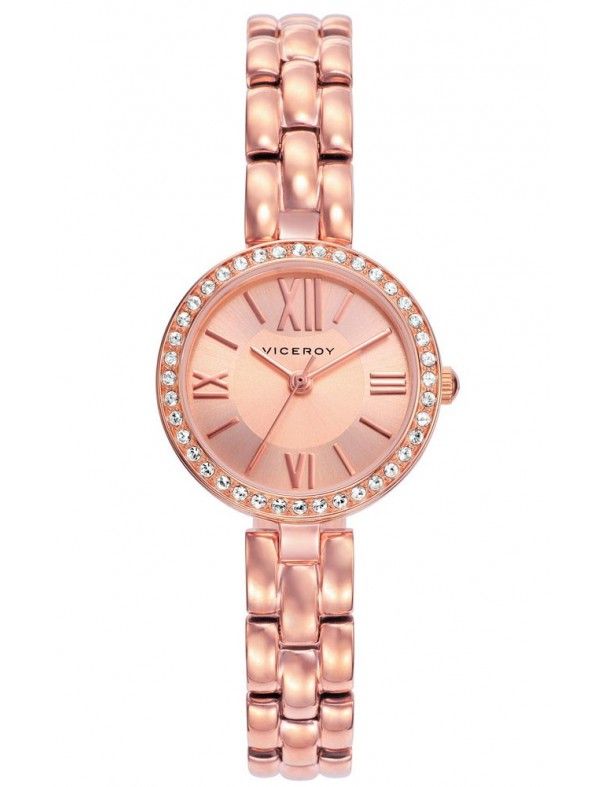 Reloj Viceroy mujer 461032-93. Este reloj analógico de 3 agujas ha sido elaborado por la marca Viceroy, para mujer, y está fabricado en acero hipoalergénico bañado en color oro rosa y viene con un cierre de seguridad de tipo joyería.