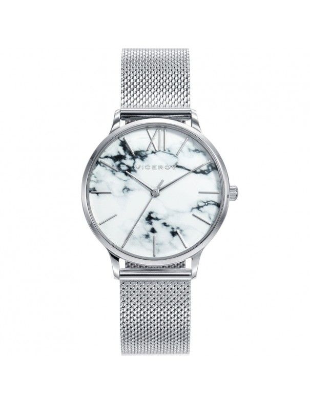 Reloj Viceroy Mujer Kiss 461096-09. Es un reloj diseñado por la marca Viceroy, para mujer de la colección Kiss. Es un modelo analógico de tres agujas con indicadores horarios en forma de índices. La caja, en acero inoxidable antialégico color plateada contiene el mecanismo que mide 33 milímetros de diámetro. La correa es tipo malla milanesa en color plata. Este elegante reloj tiene una esfera redonda tipo marmol, protegida por un resistente cristal mineral y es sumergible a 50 metros 5 ATM de profundidad. Somos distribuidores oficiales de los Relojes Viceroy que ofrecen una garantía de 2 años contra cualquier defecto de fabricación. Todos nuestros pedidos se envían con envoltorio especial de regalo y en sus cajas originales.